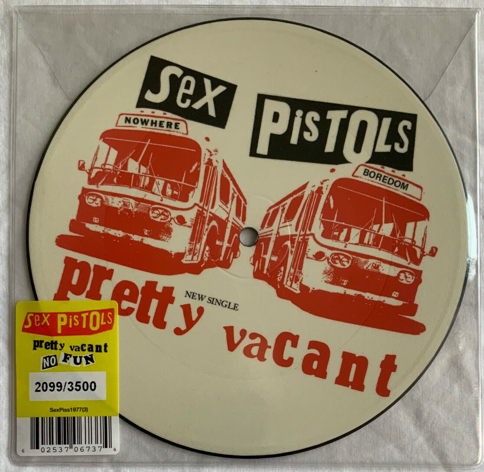 THE SEX PISTOLS - Pretty Vacant / No Fun ??Rare Original UK 2012 7" Picture Disc, Limited to only 3500 individually numbered copies. This one is number 2099. This will rise in value, just like the 'Anarchy' & 'God Save The Queen' picture discs, which are already commanding high prices, with the Anarchy disc selling for up to £40 or more.