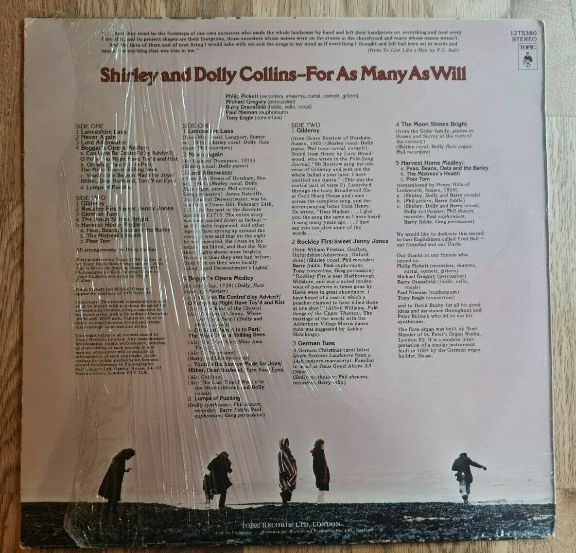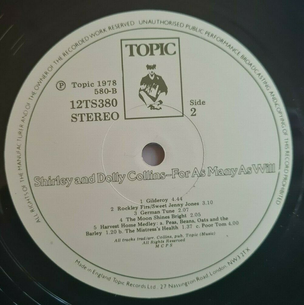SHIRLEY & DOLLY COLLINS LP FOR AS MANY AS WILL Label:UK TOPIC 1ST PRESS Catologue number:12TS380 Vinyl grades:NEAR MINT MY HIGHEST GRADE INCREDIBLE COPY Sleeve grades:BEAUTIFUL STILL IN SHRINK TINIEST CORNER WEAR REST IS PERFECT USE ZOOM TO SEE UK PATENT NO WHITE INNER