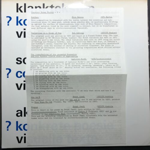 Sound Texts Concrete Poetry Henri Chopin Cobbing Electronic Experimental NM LP
