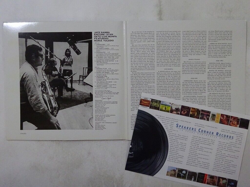 ARTIST Stan Getz / Luiz Bonfa TITLE Stan Getz / Luiz Bonfa Jazz Samba Encore! Verve V6-8523 Germany 180g VINYL LP LABEL Verve FORMAT LP w/Gatefold Cover COVER E (Excellent) S (Stain) VINYL E+ (Excellent Plus) OBI STRIPE NONE COMMENTS Accessories:insert