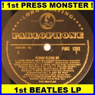 ORIGINAL 1ST U.K PRESSING (MARCH 1963) GOLDANDBLACK PARLOPHONE LABELS (PMC 1202) Long playing 33 1/3 MONO with DICK JAMES CREDITS....Made in Gt. Britain.