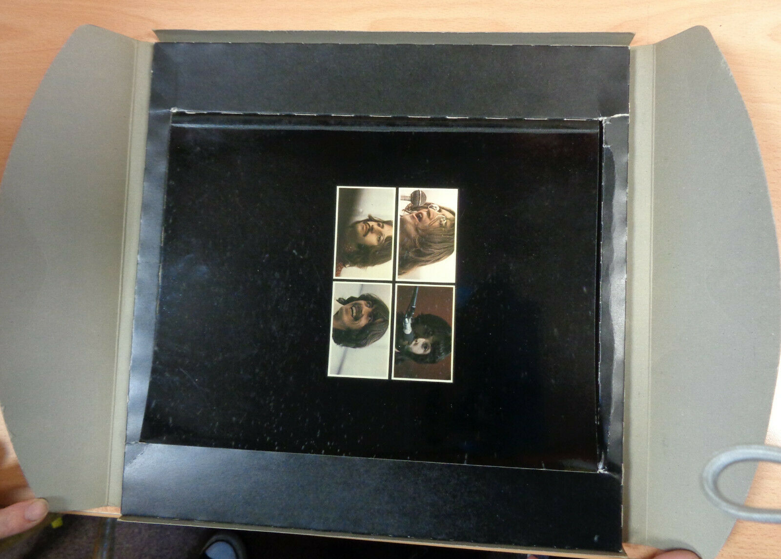 The above shows an example of a higher priced record placed inside a stiffened, high-quality box which is then placed inside a stronger, larger cardboard container to protect the corners of the record against falls or damage.