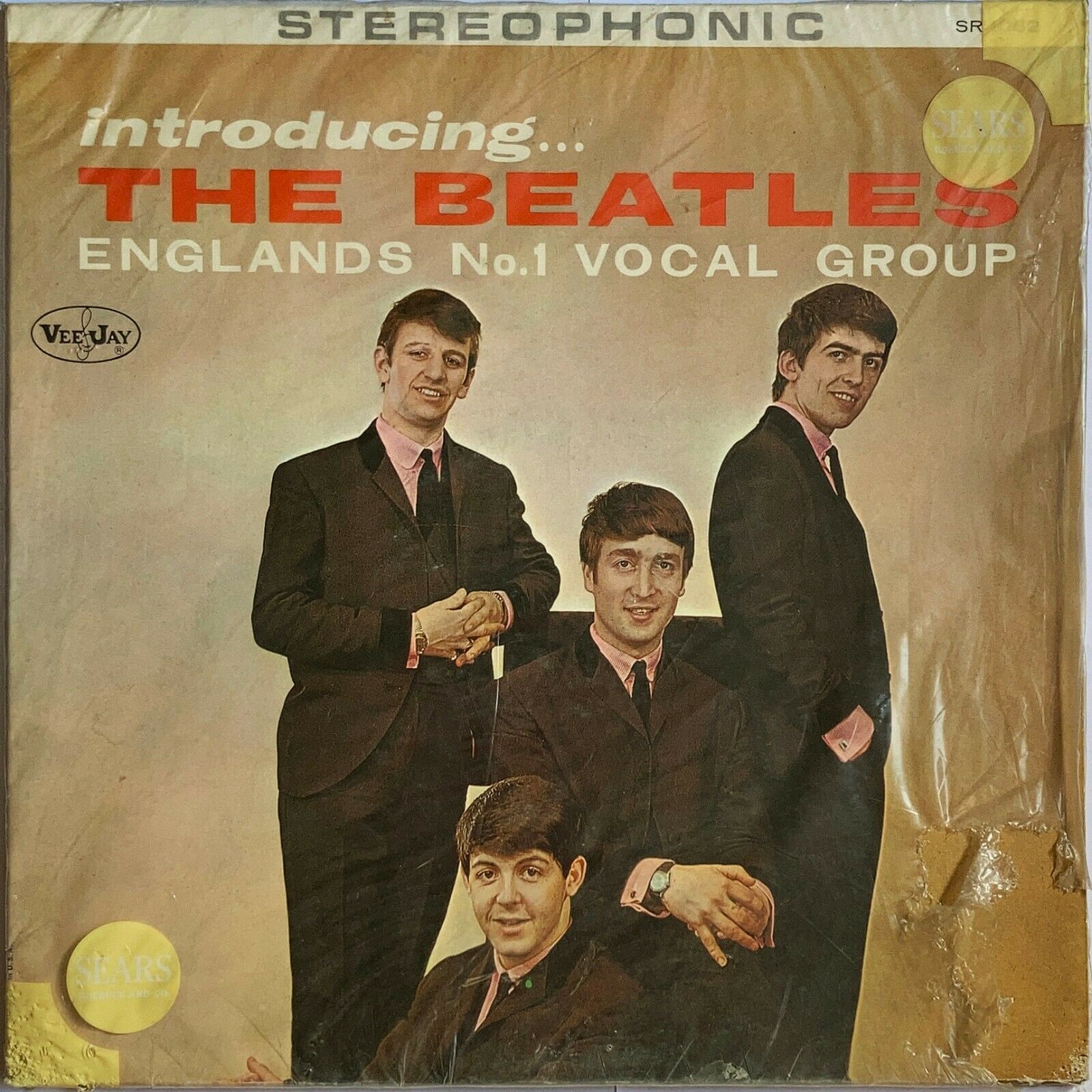 Hello. Up for your consideration is an extremely rare version one stereo copy of Introducing The Beatles on Vee-Jay Records. This first version of the album containing Love Me Do and P.S. I Love You was withdrawn after only a few weeks on sale since Vee-Jay didn't own the rights to those two songs. Because only around 2,200 stereo version one copies were originally manufactured in 1963, less than 1,000 of which were the "Ad Back" versions, this is considered one of the holy grails to Beatles collectors.