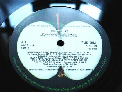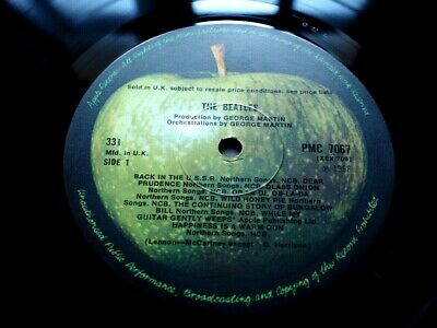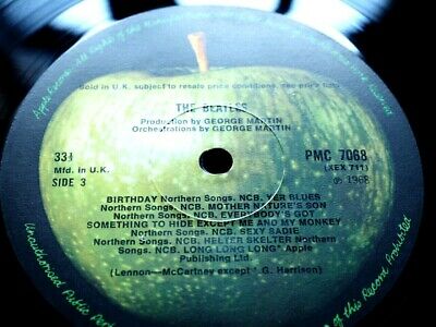 This is the UK Pressing of the White Album with Green Apple Labels. Comes with the 'Mfd. in the UK' text, NO 'EMI Recording' text on the labels, and 1 1 1 1 first press matrix numbers.