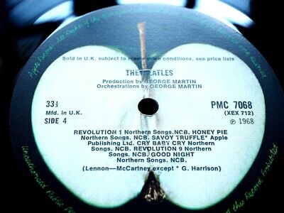 Side 4. begins with 'Revolution' and plays with incredible clear runs ins and great clear audio. There is virtually no light, occasional static and no pops or clicks. 'Honey Pie' sounds great, but with some light static during the intro. 'Savoy Truffle' plays with bright clear sound, no pops or clicks and barely any light static. 'Cry Baby Cry' and 'Can you Take Me Back', which plays so clear and bright, with a little occasional light static and no loud clicks or pops. The long abstract 'Revolution 9', a track that can be plagued by unwanted noise, sounds great, with no loud loud pops or clicks, just some moderate static and some faint occasional background tics during the opening. Leading into the final track of this Beatles masterpiece, 'Good Night', again a quiet track, so often playing with poor distorted sound, but on this press sounds great. There is some very light occasional background static and no loud pops or clicks.