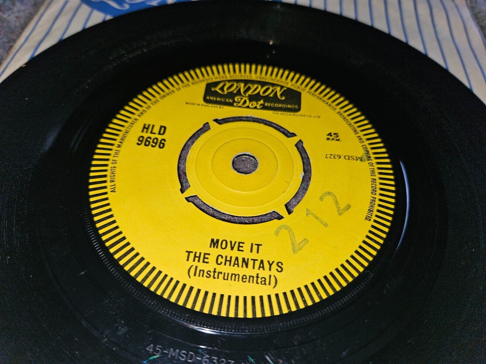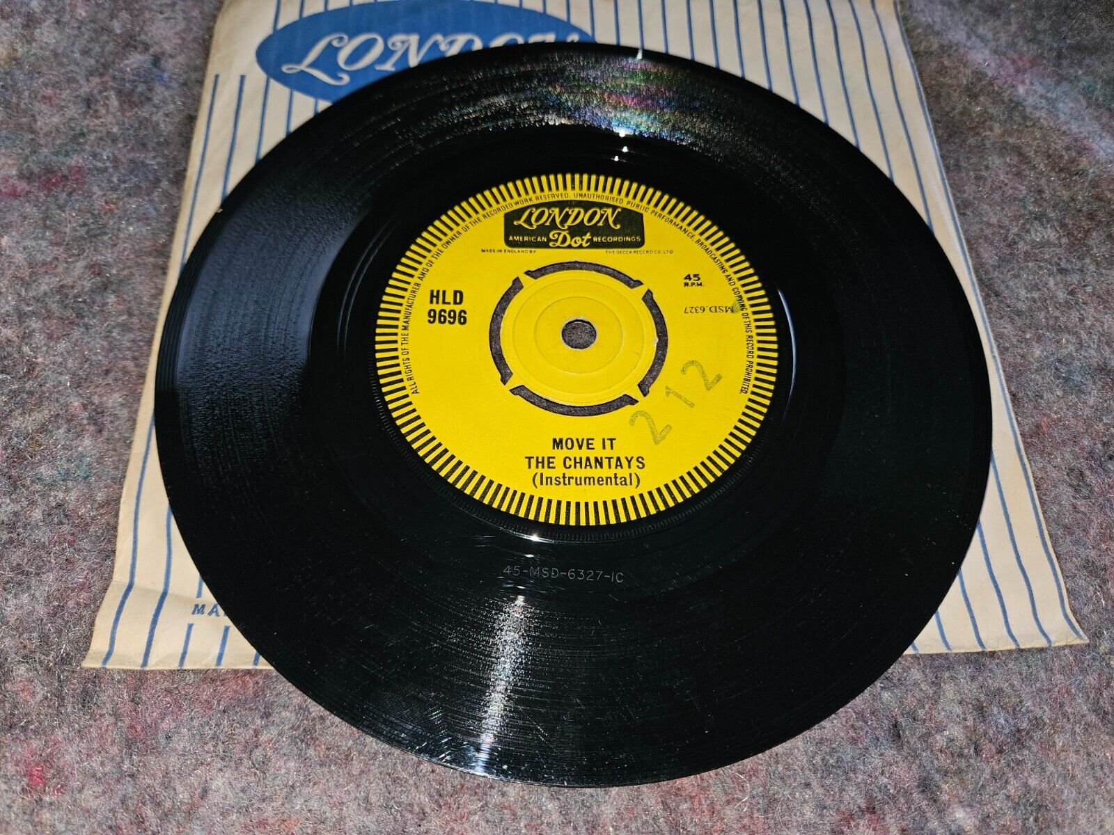 **** SELLERS NOTE - VERY NICE CLEAN DEMONSTRATION / SAMPLE COPY 7" VINYL COPY OF THIS UK PRESSING 2 TRACK SURF ROCK / GUITAR INSTRUMENTAL MUSIC 7" 45' rpm RECORD CONTAINING 2 GREAT TRACKS FROM THE GREAT 'CHANTAYS', PRESSED IN THE Uk AND RELEASED ON THE LONDON DOT RECORD LABEL IN 1962 , COMES IN ORIGINAL LONDON RECORDS COMPANY SLEEVE