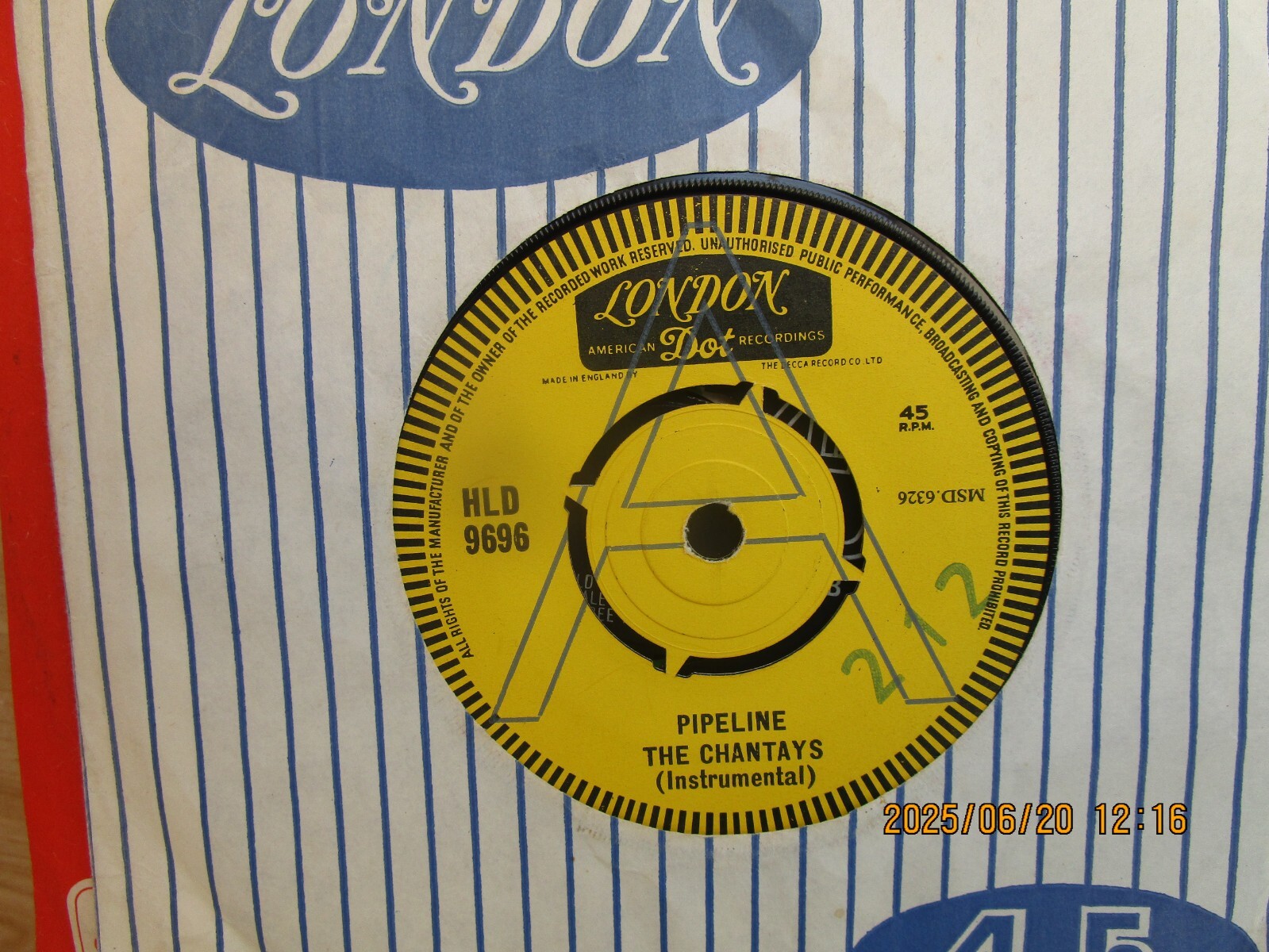 PLEASE NOTE I DO NOT SEND TO ITALY OR PORTUGAL SO DONT BID.PLEASE MAKE SURE YOU HAVE PAID FOR YOUR RECORDS WITHIN 2 WEEKS OF THE END OF THE AUCTION.OTHERWISE YOU WILL BE REPORTED TO EBAY AND WILL RECIEVE A NON PAYMENT STRIKE.IF YOU HAVE PROBLEMS WITH YOUR PURCHASE MESSAGE ME BEFORE LEAVING FEEDBACK ONLY SOME PEOPLE DO NOT READ DESCRIPTIONS PLEASE NOTE THE ROYAL MAIL HAS INCREASED THE PRICES OF POSTAGE SO LOOK BEFORE YOU BID. ORIGINAL 196? DEMO 7" SINGLE ON LONDON HLD.9696.SIDE 1=PIPELINE.SIDE 2=MOVE IT.THE VINYL IS EX+.IN THE ORIGINAL COMPANY SLEEVE...... ................................(POSTAGE) U.K.=1ST 7"=£2.80,EXTRA 7" SINGLES=35P EACH,EUROPE=1ST 7" SE=£10.60 TRACKED & SIGNED EXTRA 7" SINGLES=85P EACH,ROW=1ST 7" SINGLE=£12.10 TRACKED & SIGNED EXTRA 7" SINGLES = £1.35 EACH.FULL MONEY BACK GUARANTEE IF NOT SATISFIED.