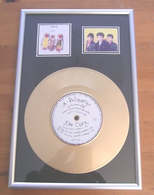 THE CURE - PRIMARY 7" Single GOLDENE Vinyl Disc in Rahmen