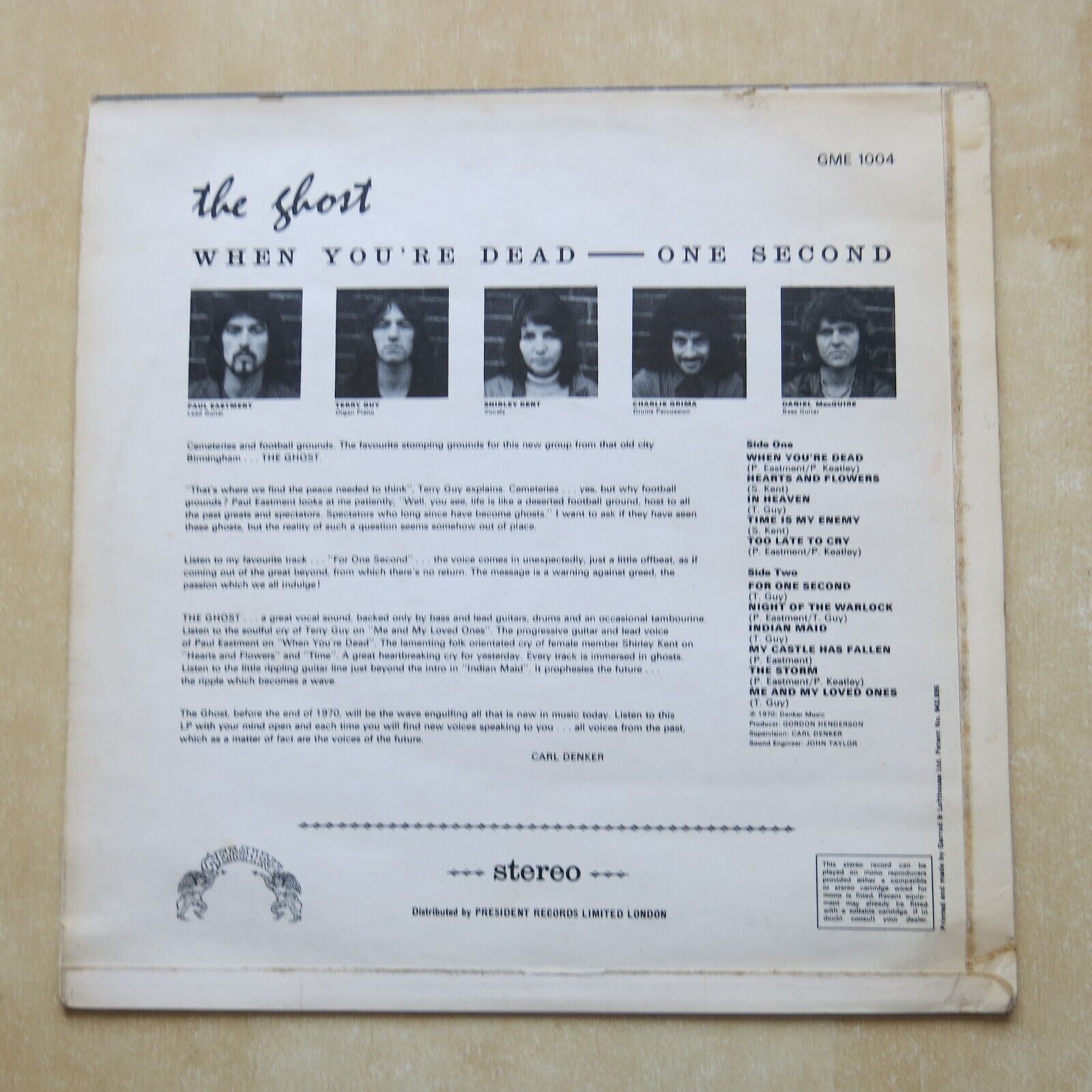THE GHOST When You're Dead - One Second UK first pressing vinyl LP Gemini 1970