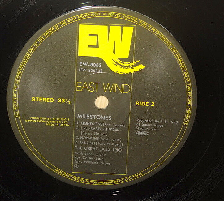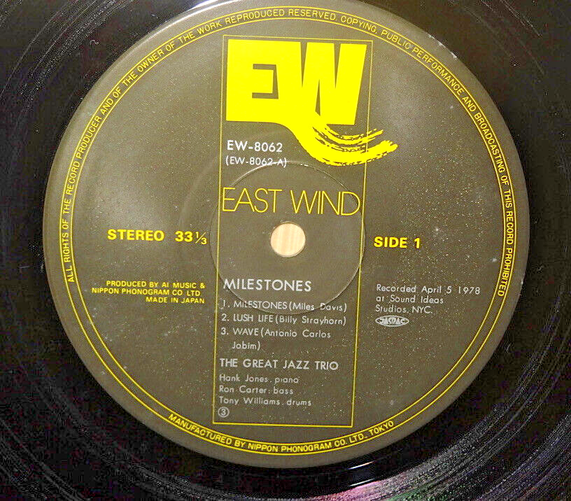 THE GREAT JAZZ TRIO; MILESTONES: ORIGINAL 1978 JAPAN PRESSING ON EAST WIND LABEL EW-8062 w/ 2 OBI'S & INSERT