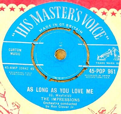 THE IMPRESSIONS AS LONG AS YOU LOVE ME b/w GYPSY WOMAN UK HMV 7" CURTIS MAYFIELD