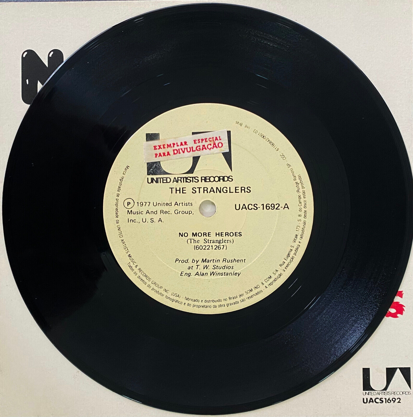 THE STRANGLERS - No More Heroes BRAZIL RARE PROMO 7" Single 1977 UACS 1692 EX+