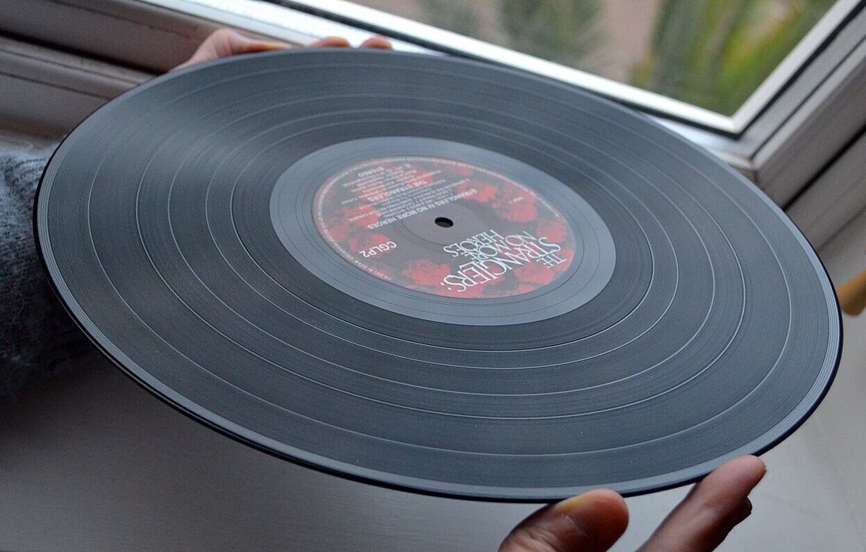 I bought this from the Stranglers website, I've added some better pictures of the vinyl, taking them next to a window helped, I've never played it. Sleeve, poster and lyric sheet are all excellent. I unfolded the poster once to have a look, it is perfect.
