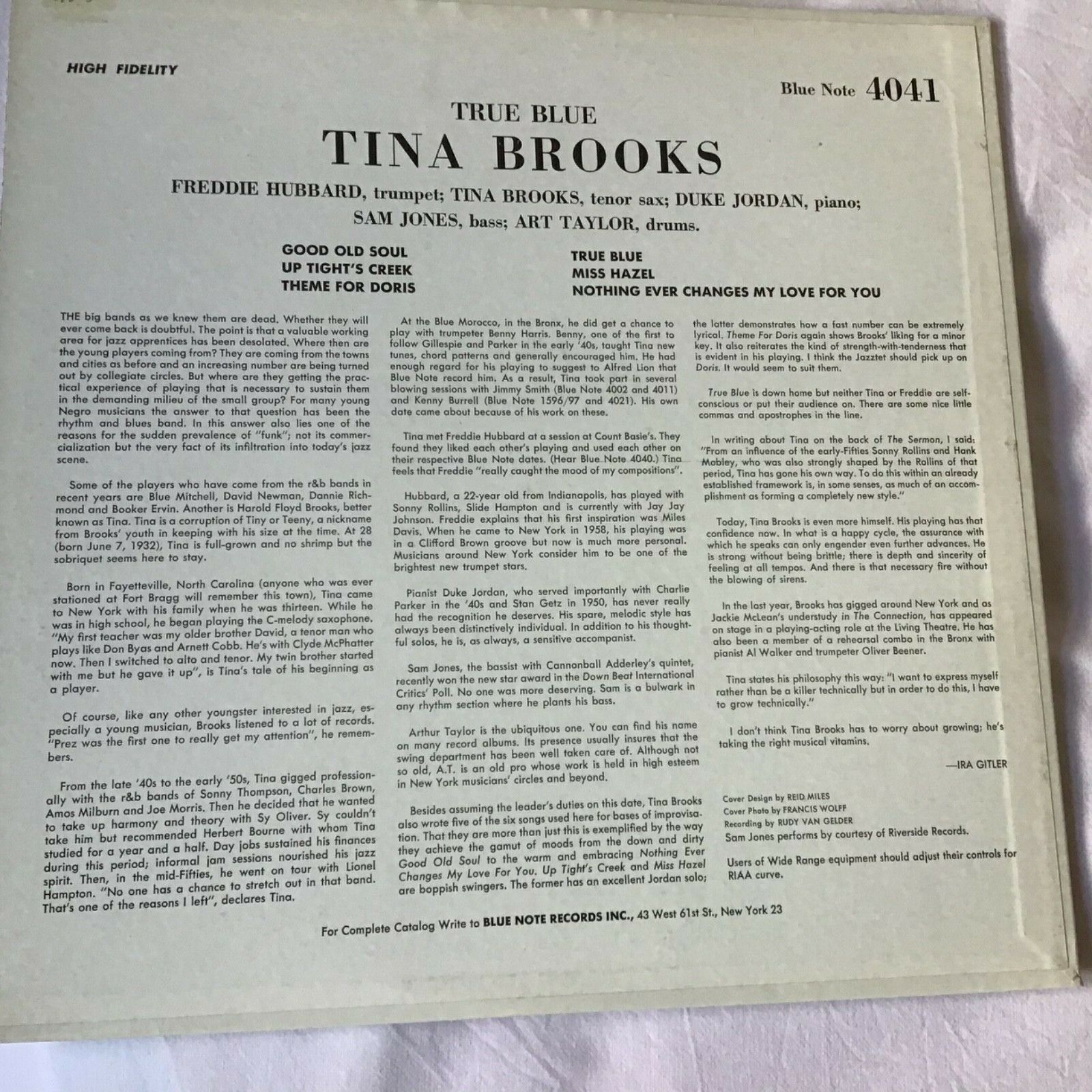 TRUE BLUE TINA BROOKS FREDDIE HUBBARD BLUE NOTE 4041 ears 47W63 RVG DG NM+/NM+