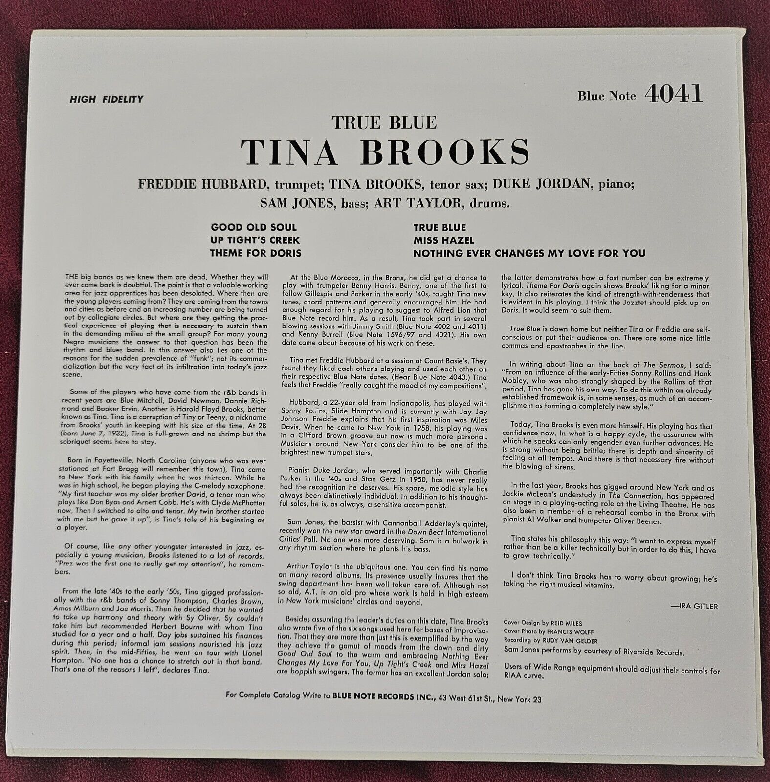 TRUE BLUE / TINA BROOKS QINTET. BLP 4011, REGs, P , RARE. 1ST PRESSING