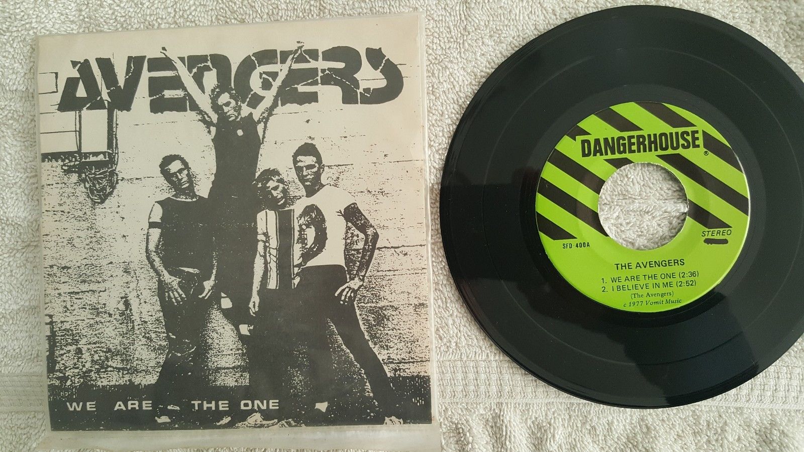 The Avengers - We Are The One 7" LA PUNK 1977 - Penelope Houston A1 We Are The One A2 I Believe In Me B Car Crash there is a misprint on this lable, see under the "stereo" there is a blacked out 33 rmp, This was like this when I bought it new in 1977 it had to have been marked out from the printer, Original 1977 US EP is , still in large original plastic fold-over sleeve.Dangerhouse 1977 origonal pressing