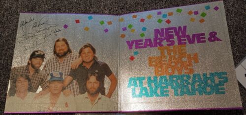 Extremely rare promo from a Beach Boys concert on New Year's Eve at Harrah's Casino/Resort in 1983. Beautiful purple glittery cover with printed signatures from all the current Beach Boys on inside cover along with a photo. Records look and sound like they were never played - NM on my system. Cover is almost NM but I'm grading it EX/VG++ due to the very minor shelf wear in spots on the seams. The song selections are exactly like on the 1974 LP compilation "Endless Summer" with the previous studio recordings we all know and love