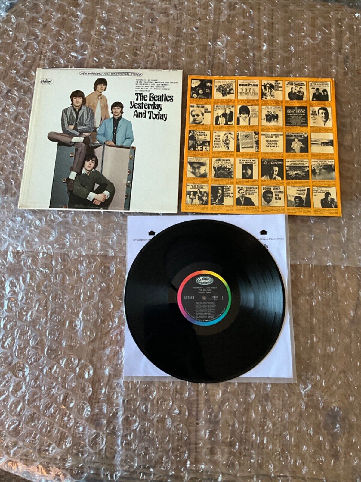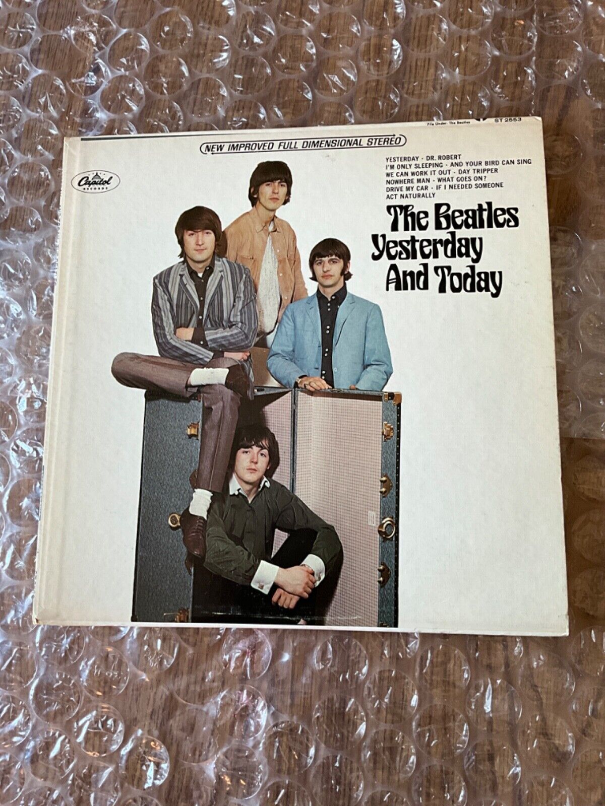 For sale is this AMAZING excellent conditioned original authentic 2nd State west coast #5 stereo Butcher Cover of The Beatles 'Yesterday And Today' album issued in June of 1966 in The United States. The album cover has no seam splits + 4 square corners. You can see Ringo's V-Neck, his head & his pants legs peeking through the trunk slick. You can even see the Butcher Cover peeking through on the top left edge. The cover retains most of its original white color from 1966 with slight aging foxing on the front. The stereo covers are 5 times harder to find than the mono covers. The matching stereo record is in lightly been played very good+ condition with great looking labels. Also included is the original Golden Rod Capitol Records 1966 company inner sleeve. This HOLY GRAIL music memorabilia item is featured on my latest YouTube video short on my 'MR Stickermania' channel and will be double boxed for protection through shipment with USPS priority mail. Thanks Frank