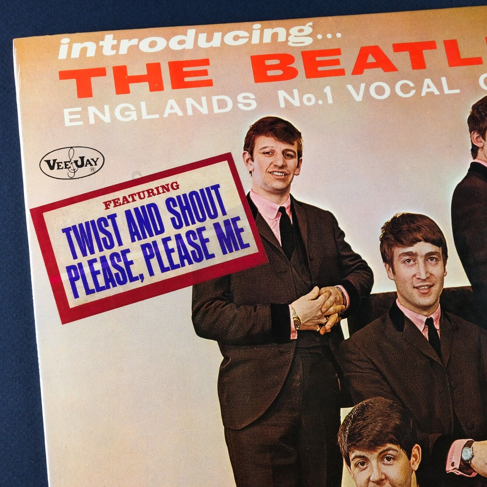 Original 1st US pressing Version 2 Mono LP 1062 copy of The Beatles’ 1st US studio album “Introducing… The Beatles” released by Vee-Jay Records on January 10, 1964. The currently listed copy remains factory sealed. The front cover contains the original “Featuring TWIST AND SHOUT PLEASE, PLEASE ME” promotional 4” x 2¼” hype sticker underneath the shrink wrap in the upper left-hand corner below the Vee-Jay Records logo. The majority of covers where this rare hype sticker can be found on, just like this copy, were printed by Imperial Paper Box Corp. and contain the company’s “2” identifier at the bottom right corner on the back. Original Mono cover with the “LP 1062” catalog number in the lower right-hand corner on the front and “VJLP 1062” in the upper right-hand corner of the paste over slick on the back which lists the song titles in thick black print in two columns indicating “Please, Please Me” with a comma. This copy represents Version 2 of this album. On January 16, 1964, less than a week after the 1st Version of “Introducing…The Beatles” was released, Vee-Jay Records was served with a restraining order stopping further distribution the “Love Me Do” and “P.S. I Love You” tracks whose publishing rights belonged to Capitol Records’ subsidiary, Beechwood Music, Inc which led to Vee-Jay replacing these two tracks with the previously omitted “Ask Me Why” and “Please, Please Me”. (Please pay attention that among our currently listed items you’ll find a unique court document whose place should be in The Beatles museum and which was a part of the “Capitol Records, Inc. vs Vee-Jay Records, Inc.” trial related to the distribution rights of The Beatles songs) It’s impossible to find nowadays a copy of this album in a factory sealed condition as it’s usually located in private collections and the collectors are quite reluctant to part ways with it, unless there’s a special reason. If looking carefully, you could see the edge of a white inner sleeve through the fully intact factory shrink wrap at the cover’s mouth, which is most likely the Vee-Jay Records’ “Other Fine Albums of Significant Interest” white background inner sleeve containing 25 adverts for the other Vee-Jay releases on each side.