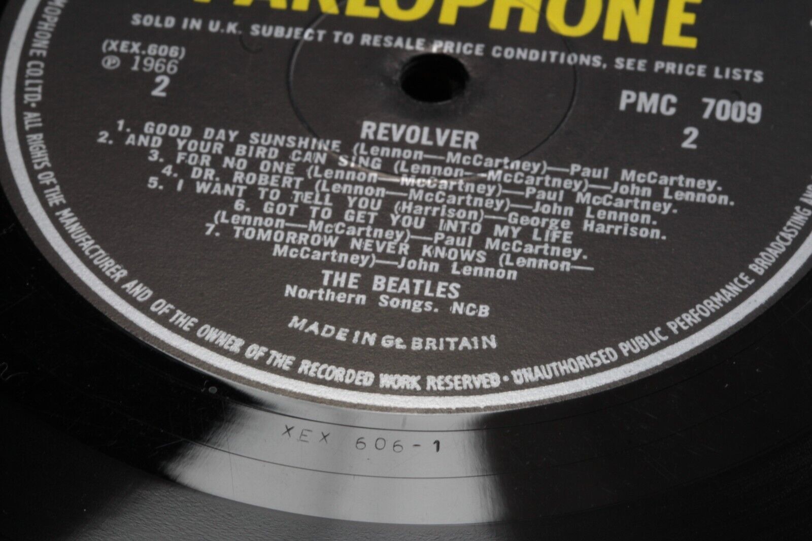The UK mono 1st pressing of Revolver, identifiable by the side 2 matrix number: XEX 606 - 1, is particularly sought after for the alternative mix, so-called 'remix 11', of "Tomorrow Never Knows". According to anecdotal evidence, the wrong tape was sent to EMI for mastering. A member of the production team discovered this and contacted the EMI pressing plant to rectify the situation. Although reluctant, they agreed to stop production and remaster the correct mix with the understanding that those records already pressed would be sold. The record for sale in this listing is one such example.