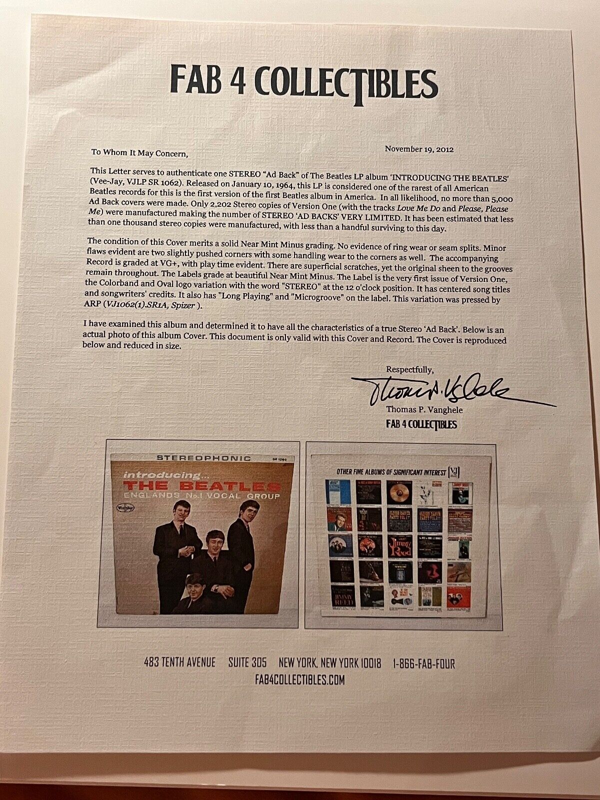 The Beatles - WOW Introducing The Beatles RARE AD BACK STEREO NEAR MINT LOA COA