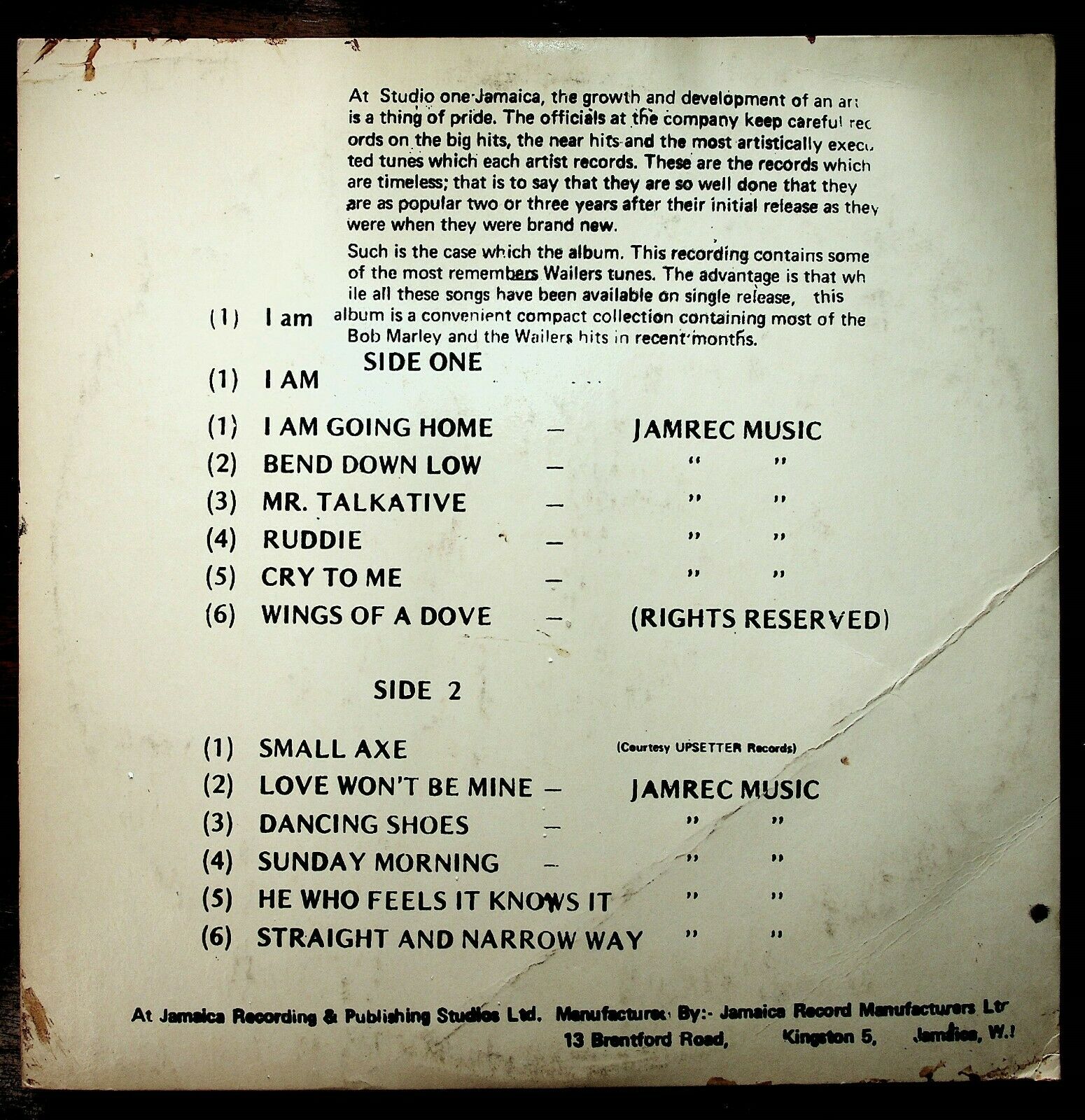 Coxsone Records (no #) (made in Jamaica) - The Best Of Bob Marley & The Wailers LP.