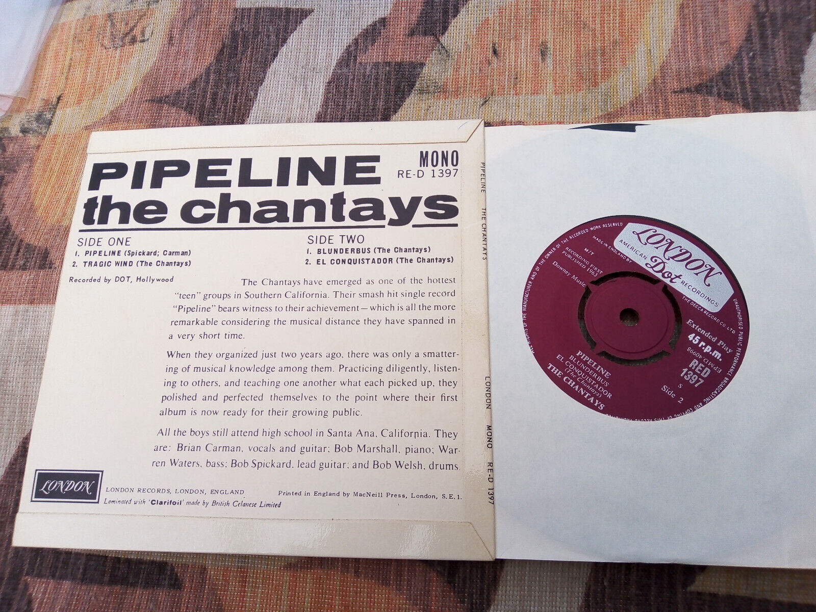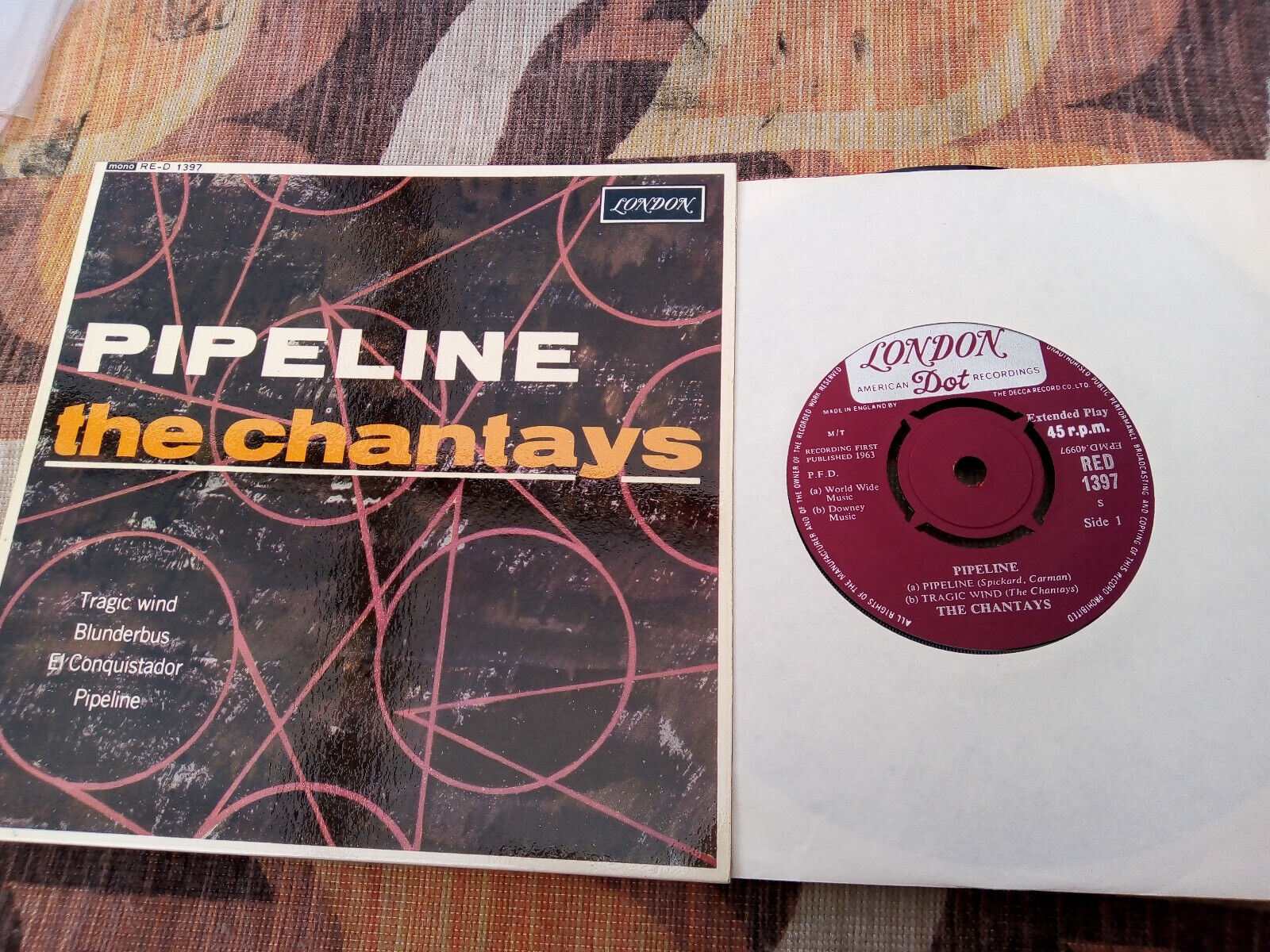 Selling some VERY Nice Extended Play 45s In Very Nice Condition All From One Collection ,----- Here we Have , The Chantays, PIPELINE , London Dot , RED-1397 ( 1963 ) , 1st PRESS = Pipeline , Tragic Wind / Blunderbus El Conquistador , Record in MINT MINUS Condition with the Picture Cover in MINT Condition, Scarce EP and In FANTASTIC Condition , You will wait a Long Time to Find one so Nice, Record will be posted 1st Class SIGN For, I am in E Bay Global Shipping Programme so this can be purchased to Ship overseas