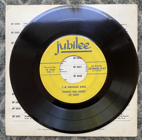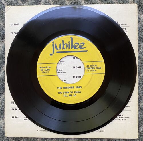 The Orioles Sing EP-5000 Jubilee w/ sleeve VG Too Soon to Know Doowop