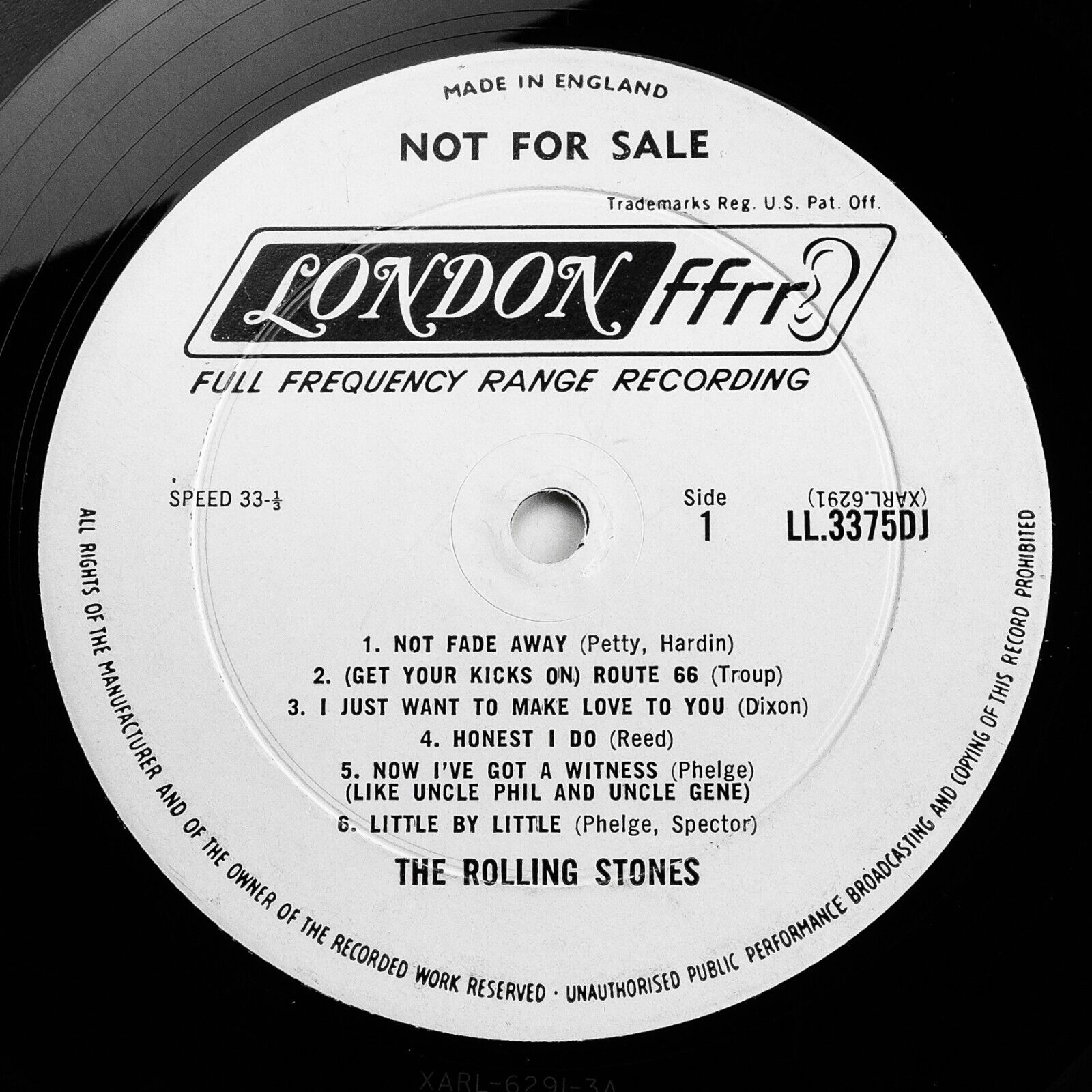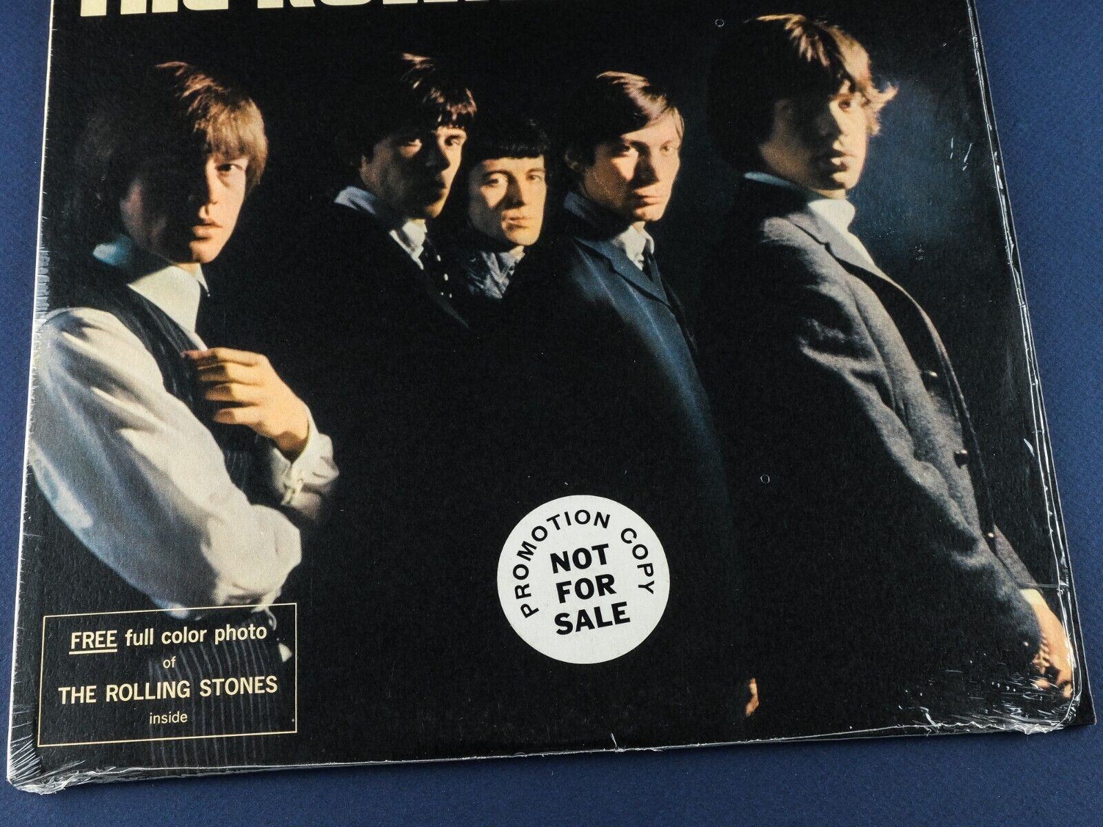 Original promotional copy of the US issue of The Rolling Stones’ debut album released by London Records on May 30, 1964. The cover had the “England’s Newest Hit Makers” banner which later on became the album’s official title. The front side of this textured cover contains a blurb reading “FREE full color photo of THE ROLLING STONES inside” in the lower left-hand corner. The cover still remains in the original factory shrink wrap with a round “Promotional Copy Not For Sale” sticker affixed to the front cover underneath the shrink wrap. Original 11” x 11” textured “The Rolling Stones” photo insert which features the same artwork as the album’s front cover. Original “Made in England” London Records 2.75” deep groove pressing ring “Not For Sale” white labels with a boxed London “FFRR” logo and “LL.3375DJ” catalog number unlike the “LL 3375” indicated on the cover. 1st promotional pressing containing the 1st -3A / -3A matrix numbers with the full matrix numbers being as follows: Side 1: XARL-6291-3A; Side 2: XARL-6292-3A. This promotional album comes with an original London Records poly-lined “U.K. Patent No. 1,072,844” inner sleeve.