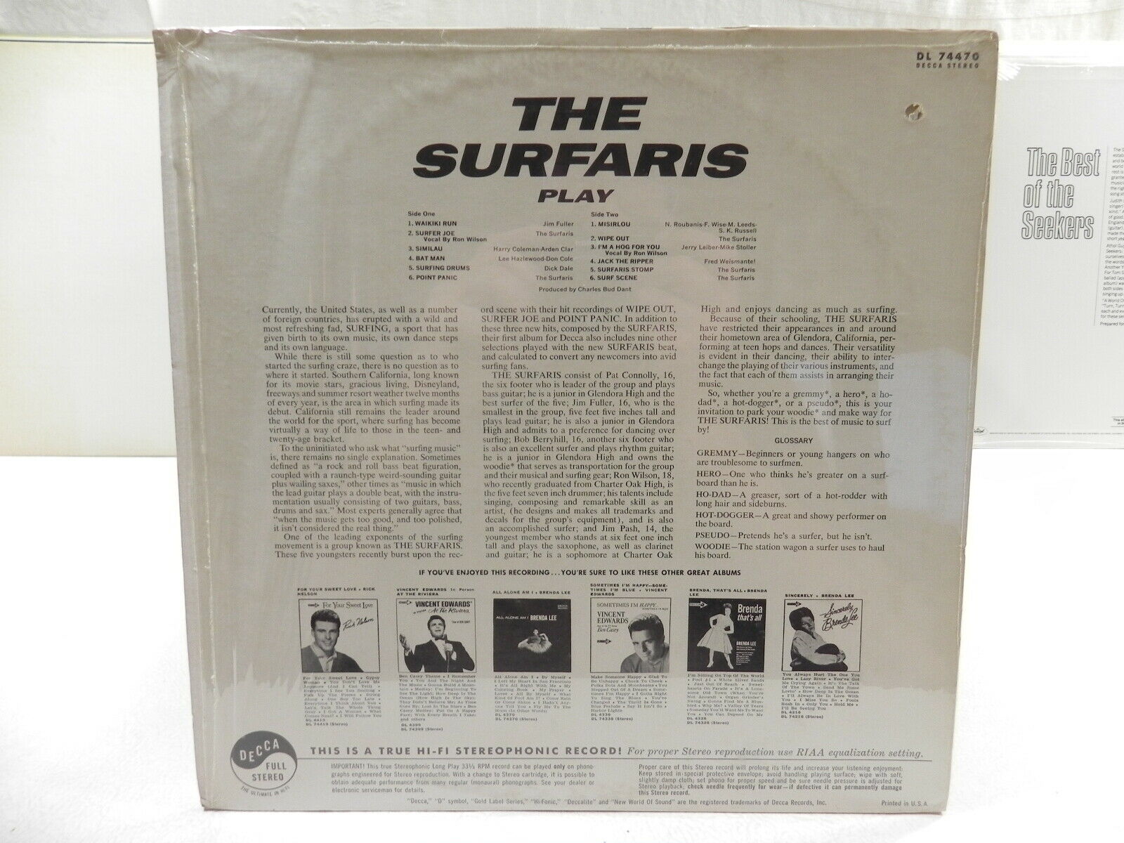 The Surfaris "Play Wipe Out " ORIGINAL STEREO Decca Records DL 74470 punched