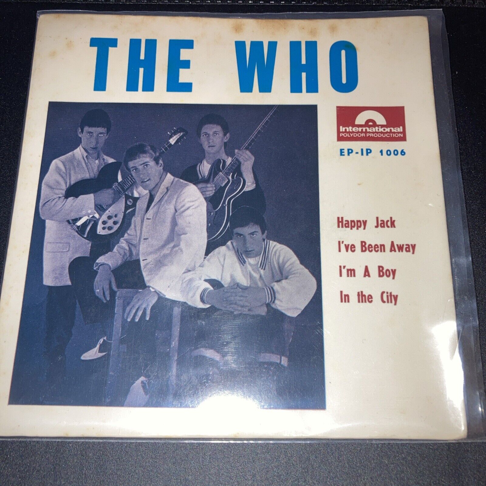 MEGA RARE ep FROM ISRAEL 1967.MONO EP 1006.TWO HITS ON ONE EP. HAPPY JACK / I'VE BEEN AWAY / I'M A BOY/ IN THE CITY,FRONT LAMINATED COVER, ORANGE POLYDOR LABLES .