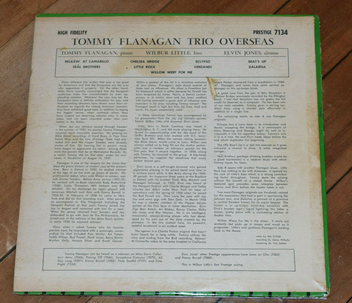 Tommy Flanagan Overseas VG+ 1st W50th RVG Prestige 7134 lp Rare Jazz Holy Grail