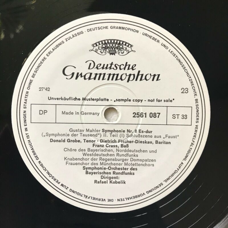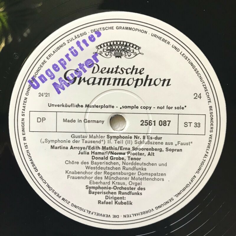 Unplayed DGG 2561087 Stereo Test Press, Sample copyGustav Mahler Symphonie Nr.8 Es-dur