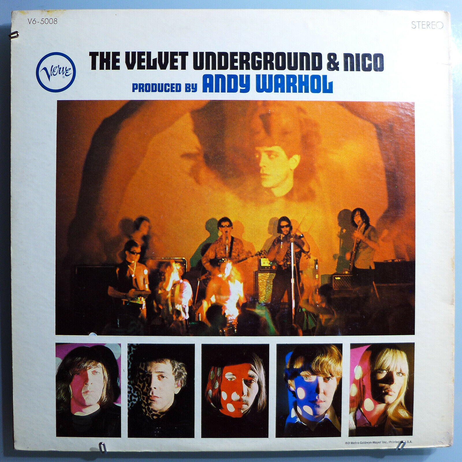 · VELVET UNDERGROUND - VELVET UNDERGROUND AND NICO (THE GROUP'S FIRST ALBUM, ALSO KNOWN AS THE 'BANANA COVER') - ORIGINAL 1967 VERVE STEREO LP V6-5008 WITH FULL AND UNCENSORED, ORIGINAL "TORSO" BACK COVER (ERIC EMERSON’S TORSO IS PRESENT AND FULLY VISIBLE)