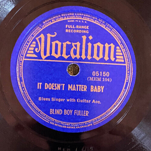 Vocalion 05150 Blind Boy Fuller IT DOSEN'T MATTER BABY Blues 78rpm EE-