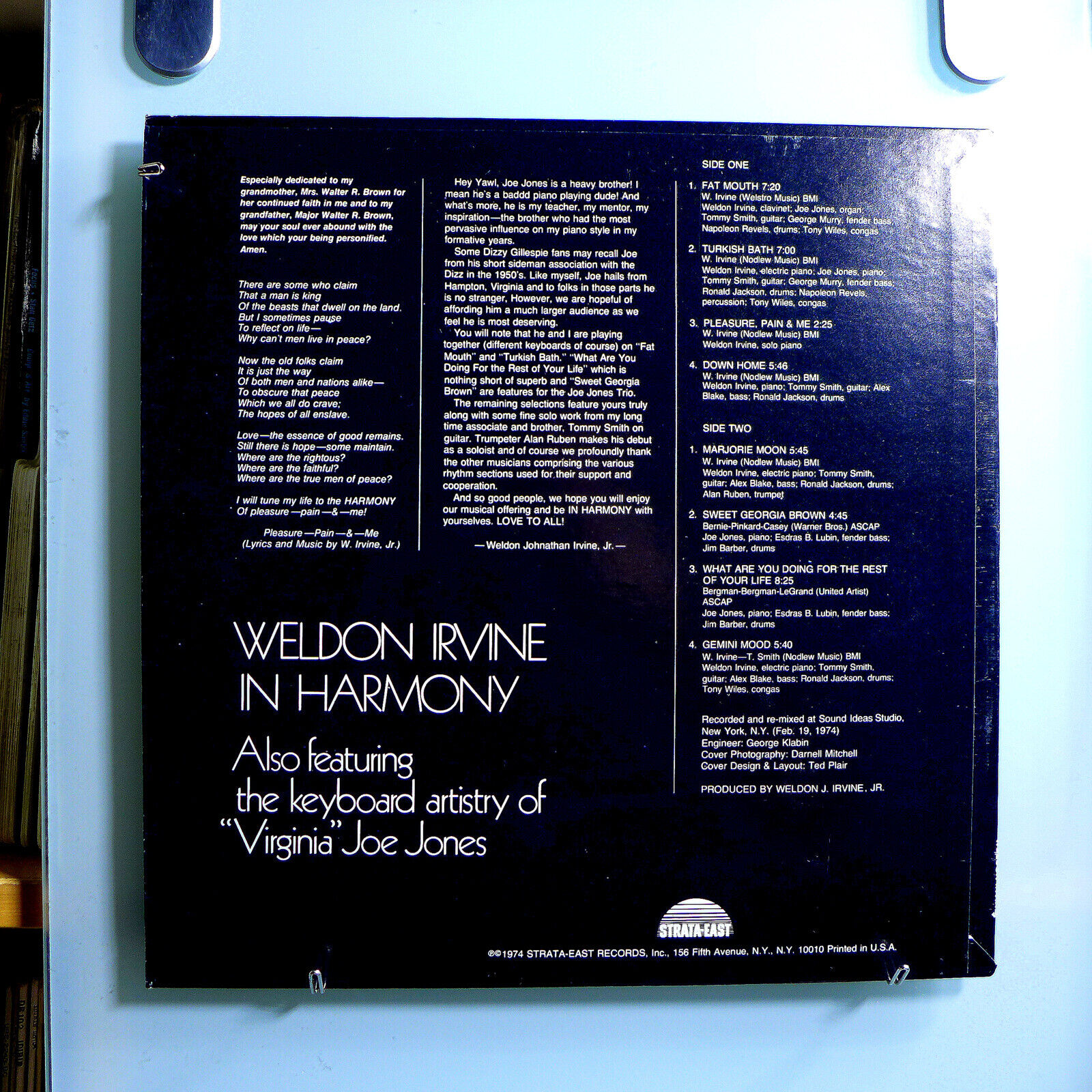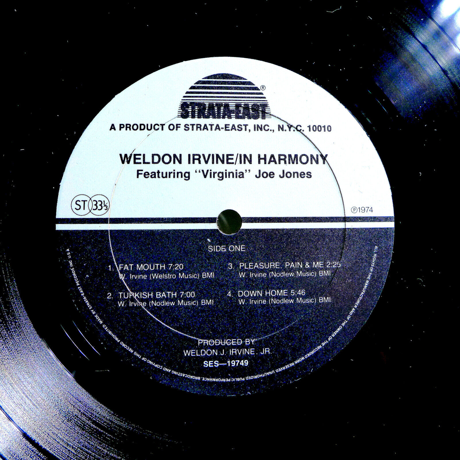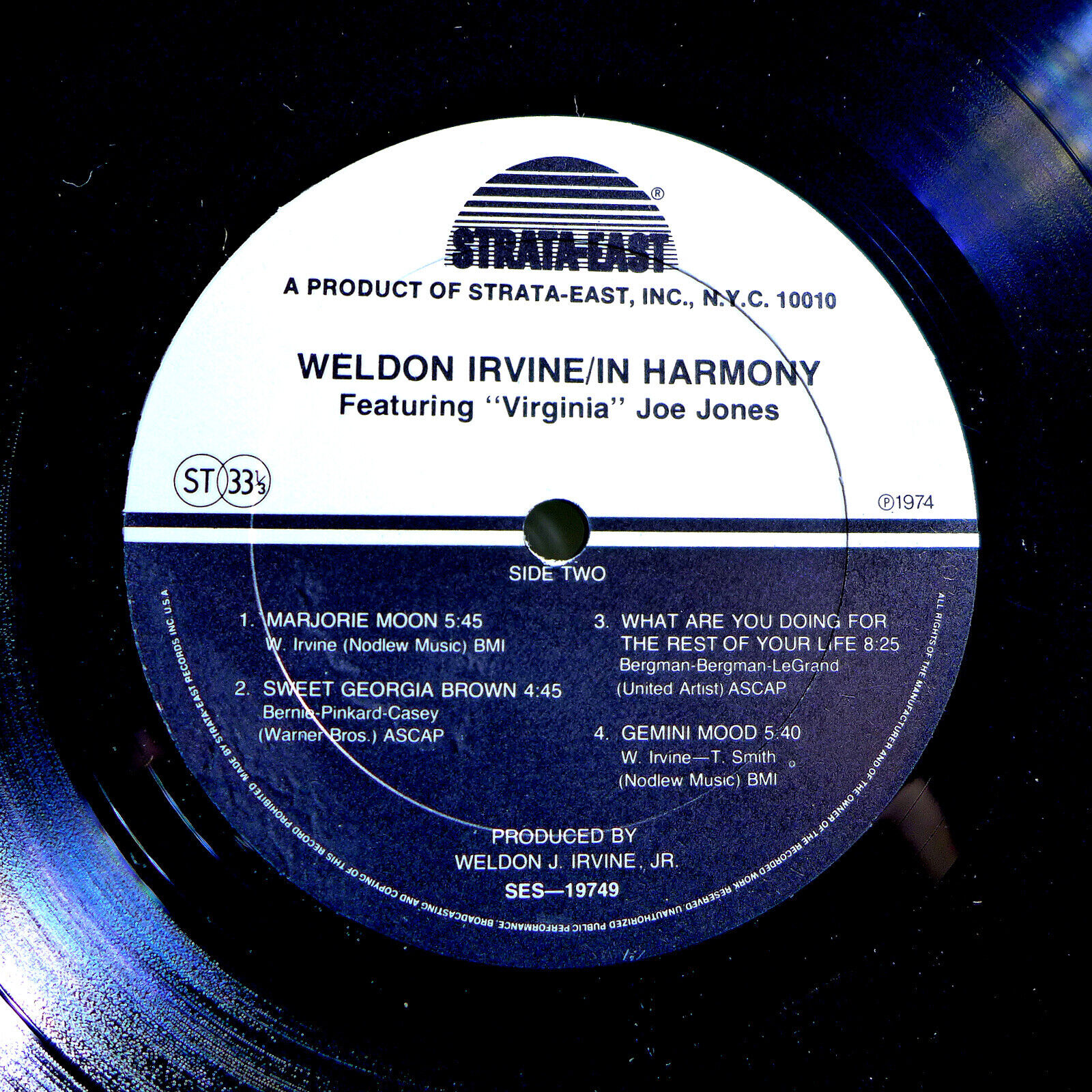 · WELDON IRVINE – IN HARMONY ( PROBABLY THE RAREST WELDON IRVINE ALBUM IN EXISTENCE; IN SOME WAYS EVEN RARER THAN HIS PRIVATE PRESSINGS ON HIS PROPRIETARY ‘NOODLEW’ LABEL) - ORIGINAL 1974 STRATA-EAST STEREO LP SES-19749