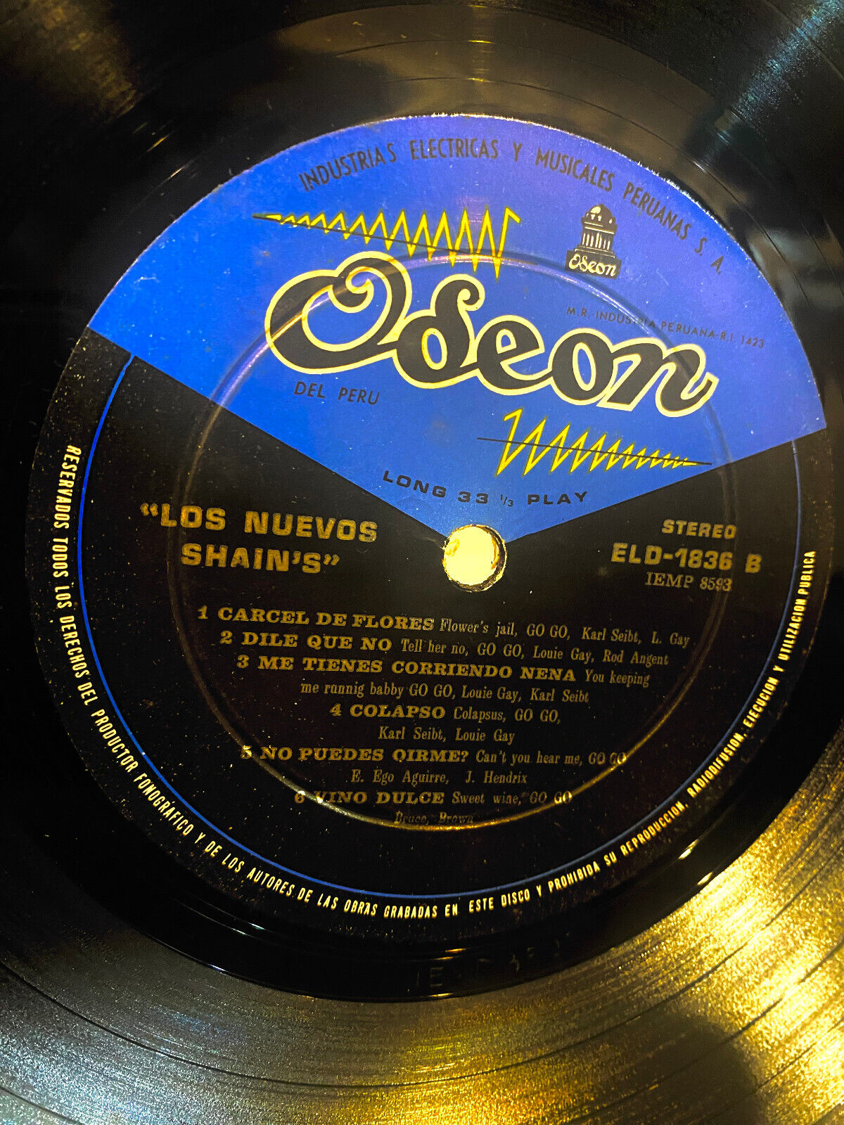 - MEGA RARE LP of LOS NUEVOS THE SHAIN'S manufactured and distributed by Industrias Electricas Y Musicales Peruanas for the label ODEON series ELD 1836
