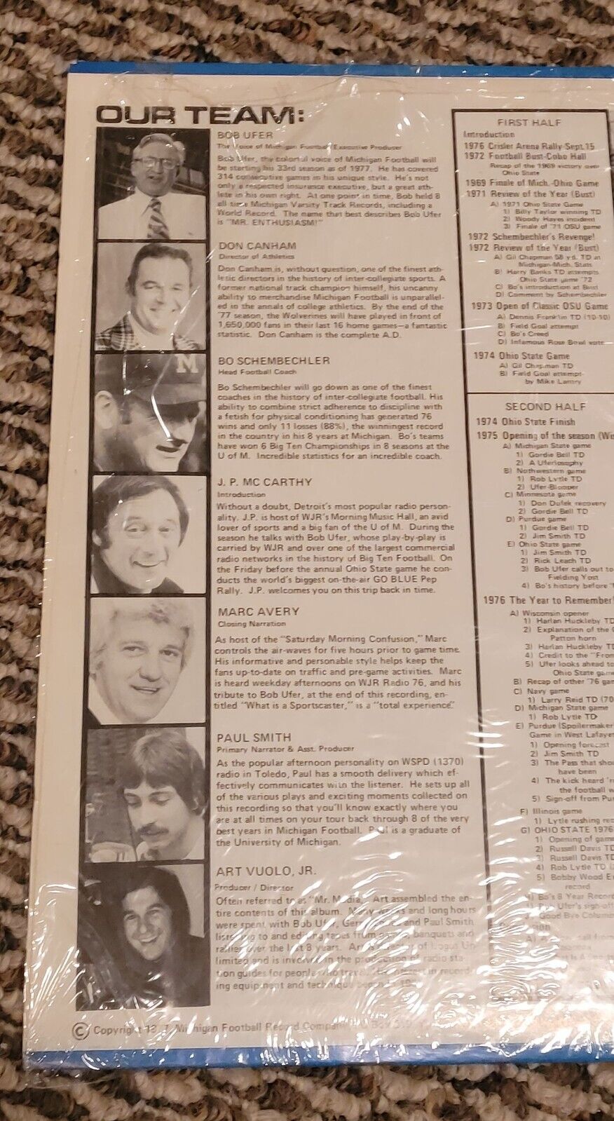 UFER of MICHIGAN Football 1969-1976 LP SEALED! Bo Schembechler