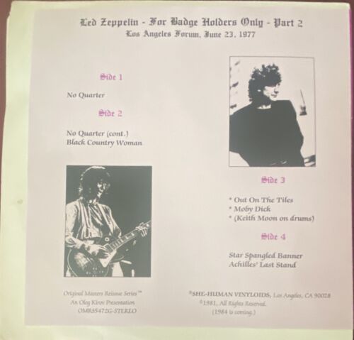 led zeppelin For Badge holders Only Live In LA 1977 vinyl lp
